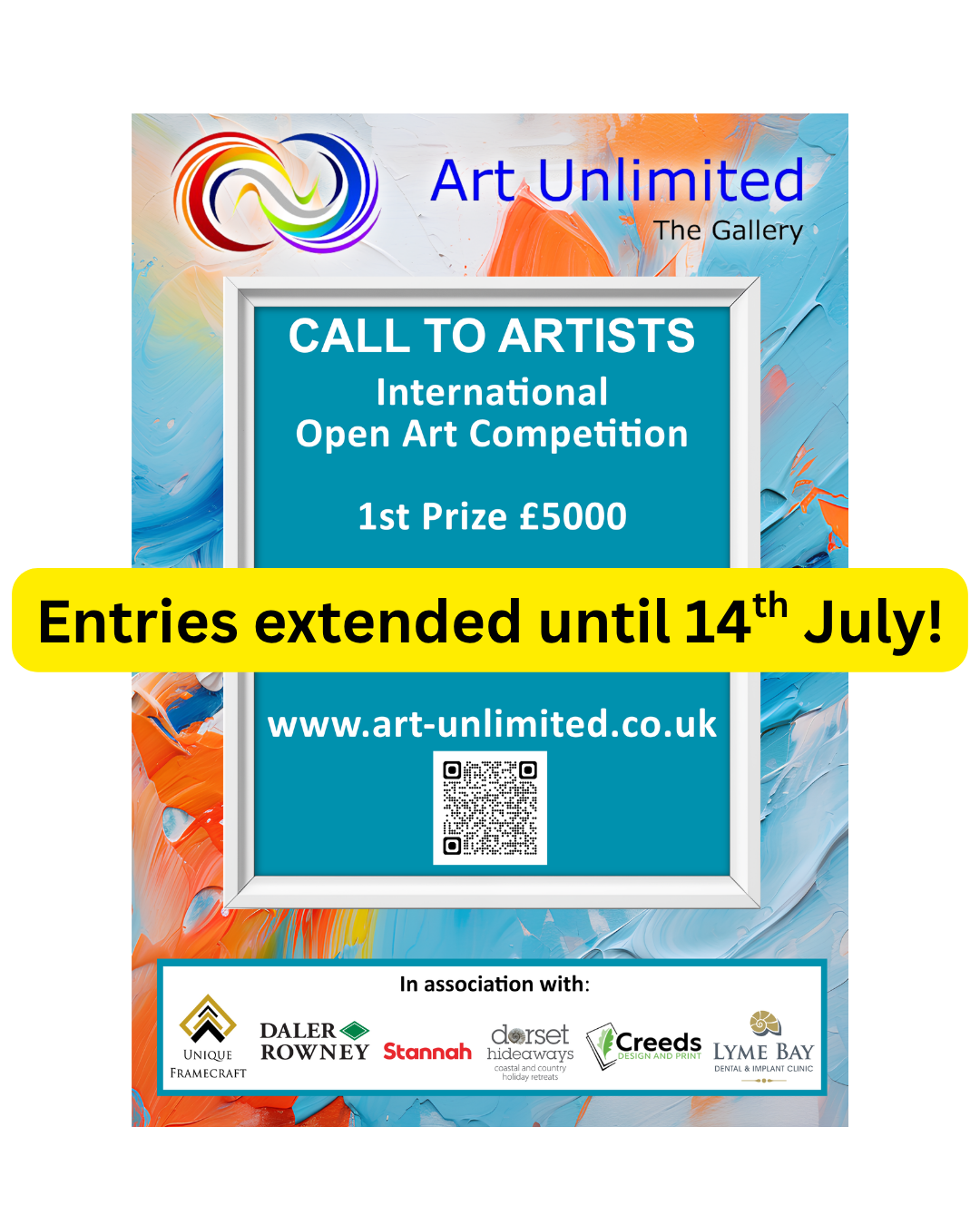 Helping to usher in our new 2025 Competition prize category for Dorset based artists, we are holding an exhibition in the Gallery to celebrate some of the talented artists from Dorset who were finalists in our 2024 Competition. Running in the Gallery until Saturday 10th May. You can find out more about the exhibition by checking out its own page HERE . Our 2025 International Open Arts Competition is open for entries until Friday 4th July, You can find out more about the Competition - including the new Best Dorset Artist Category, sponsored by Dorset Hideaways - by viewing the 2025 Competition webpage HERE .
