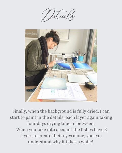 'My favourite time, when not behind my easel is time with my family, walking and enjoying the Dorset coastline where we live. Much of the inspiration for my ocean work was ignited during four years spent living in mainland Spain, surrounded by the med and a vibrant mix of Spanish and international culture. This was where my ocean themed pieces were originally born and I decided to bring them back to Dorset with me.'