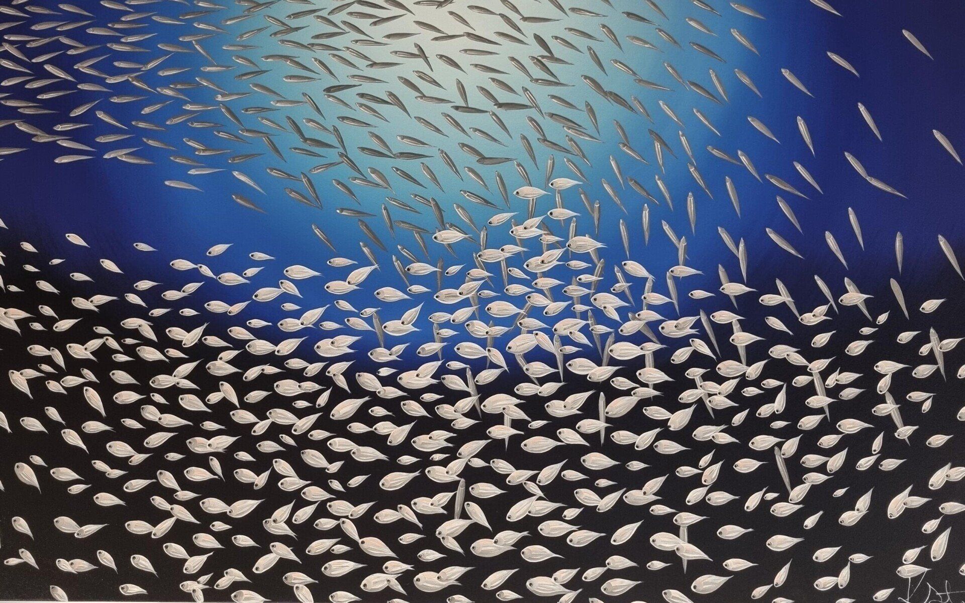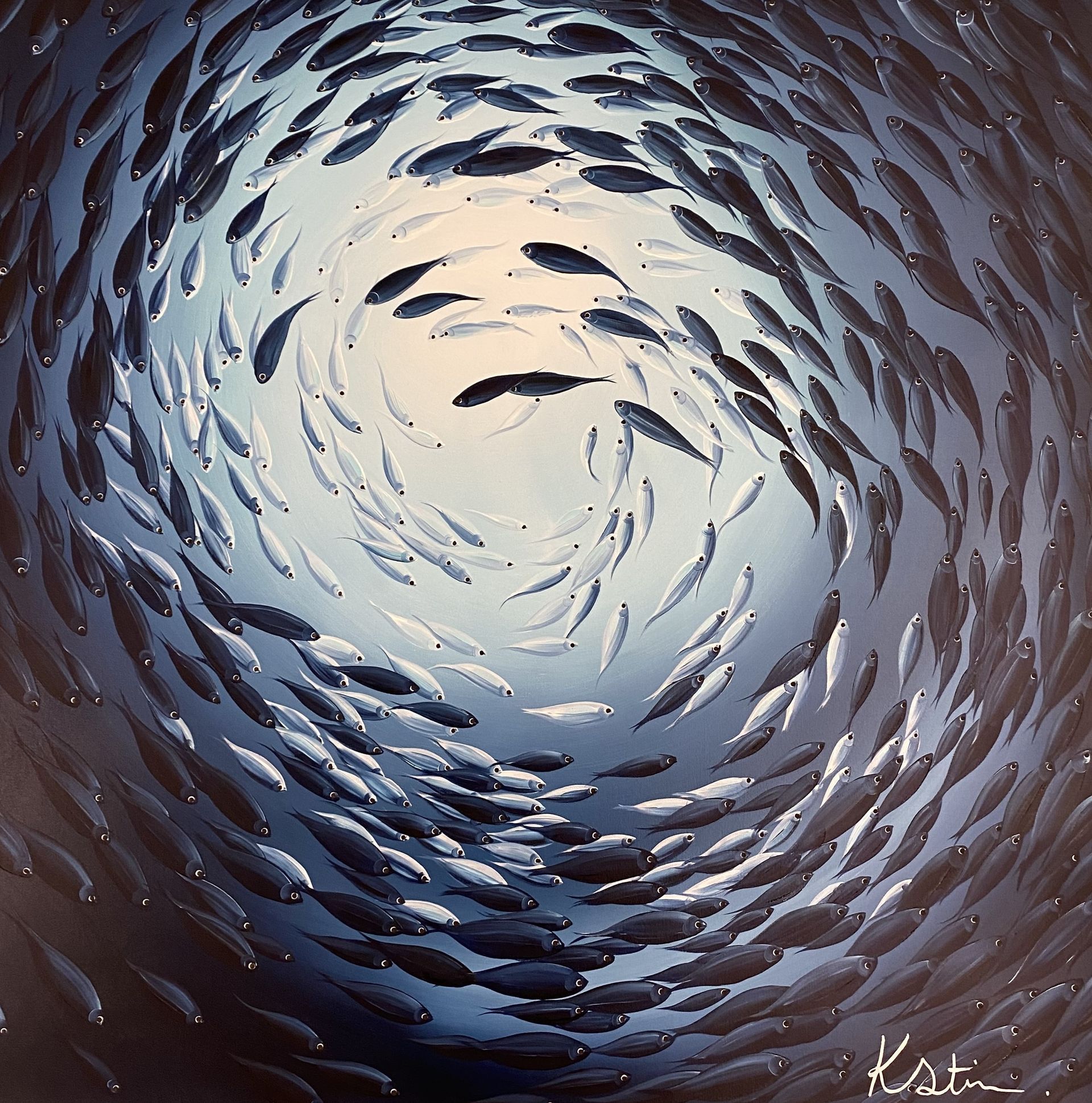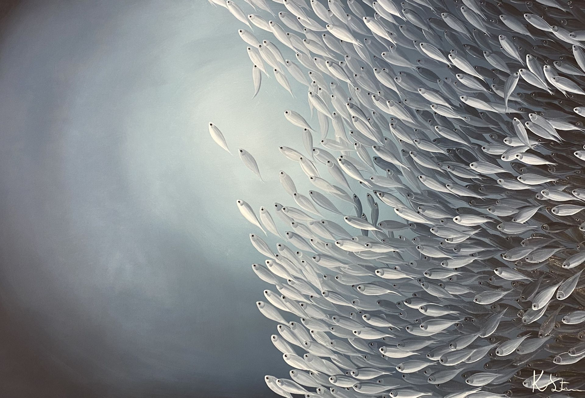 Katherine Stainton is an English artist with a strong interest in group wildlife. She is dedicated to the construction of rhythmic colour composition in her work, to create balance and a sense of harmony in order to reflect the effortless nature of animal groups, and their ability to survive as one.