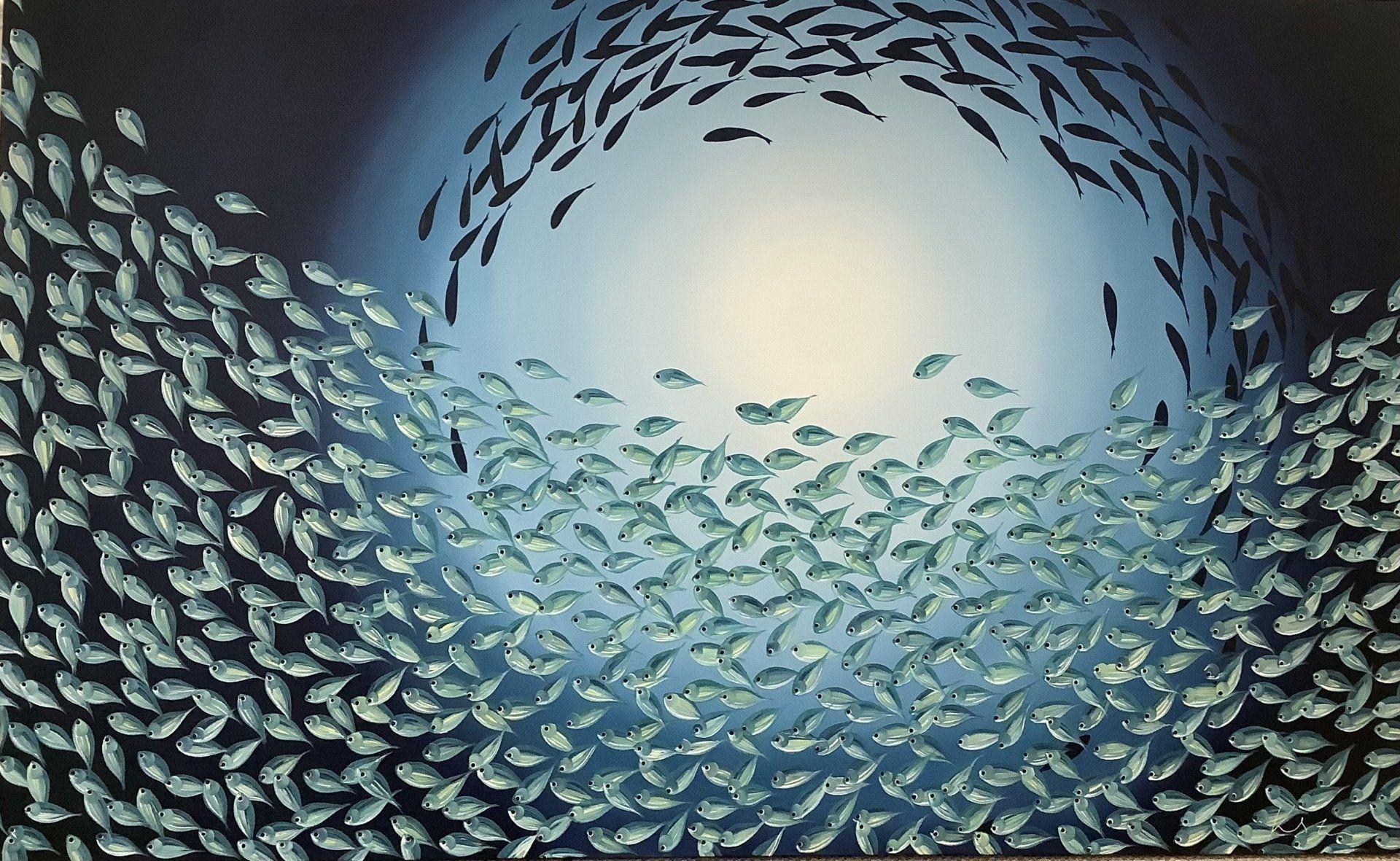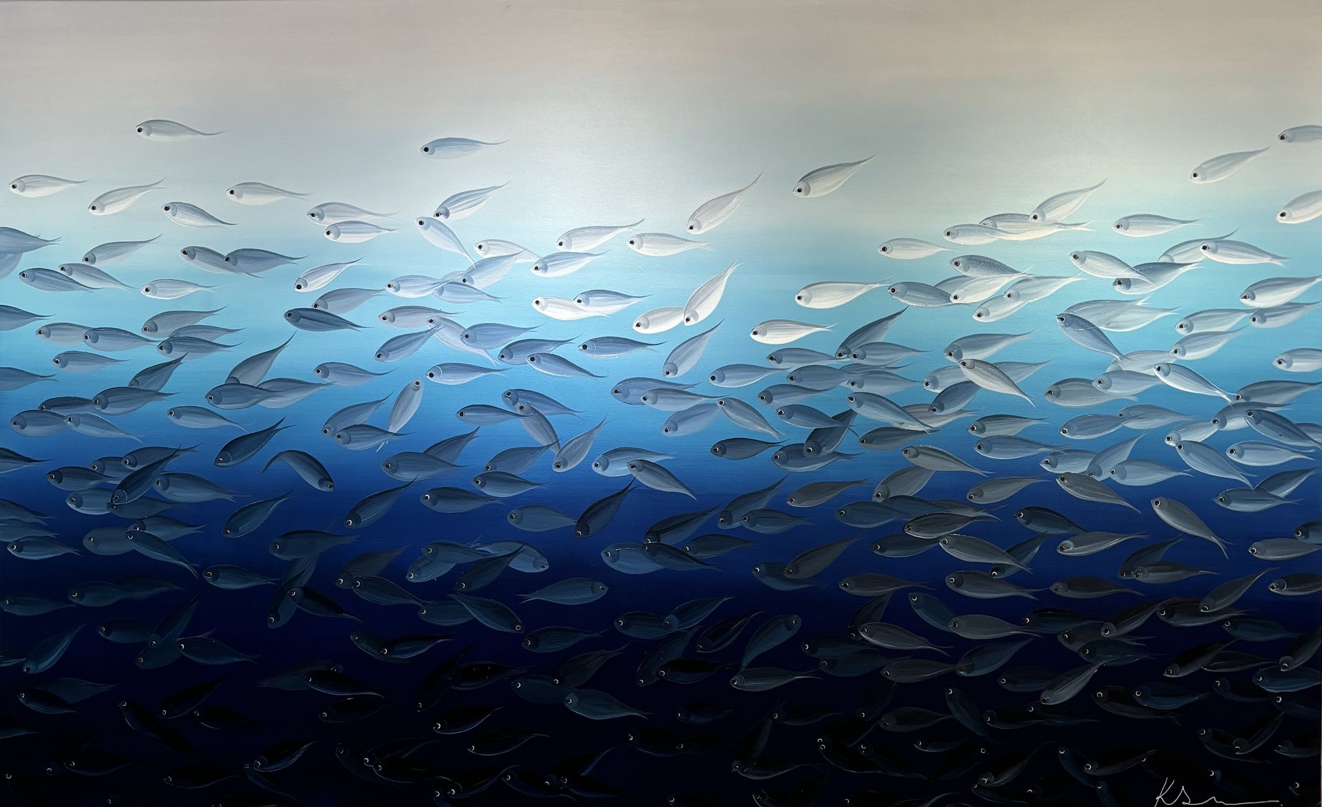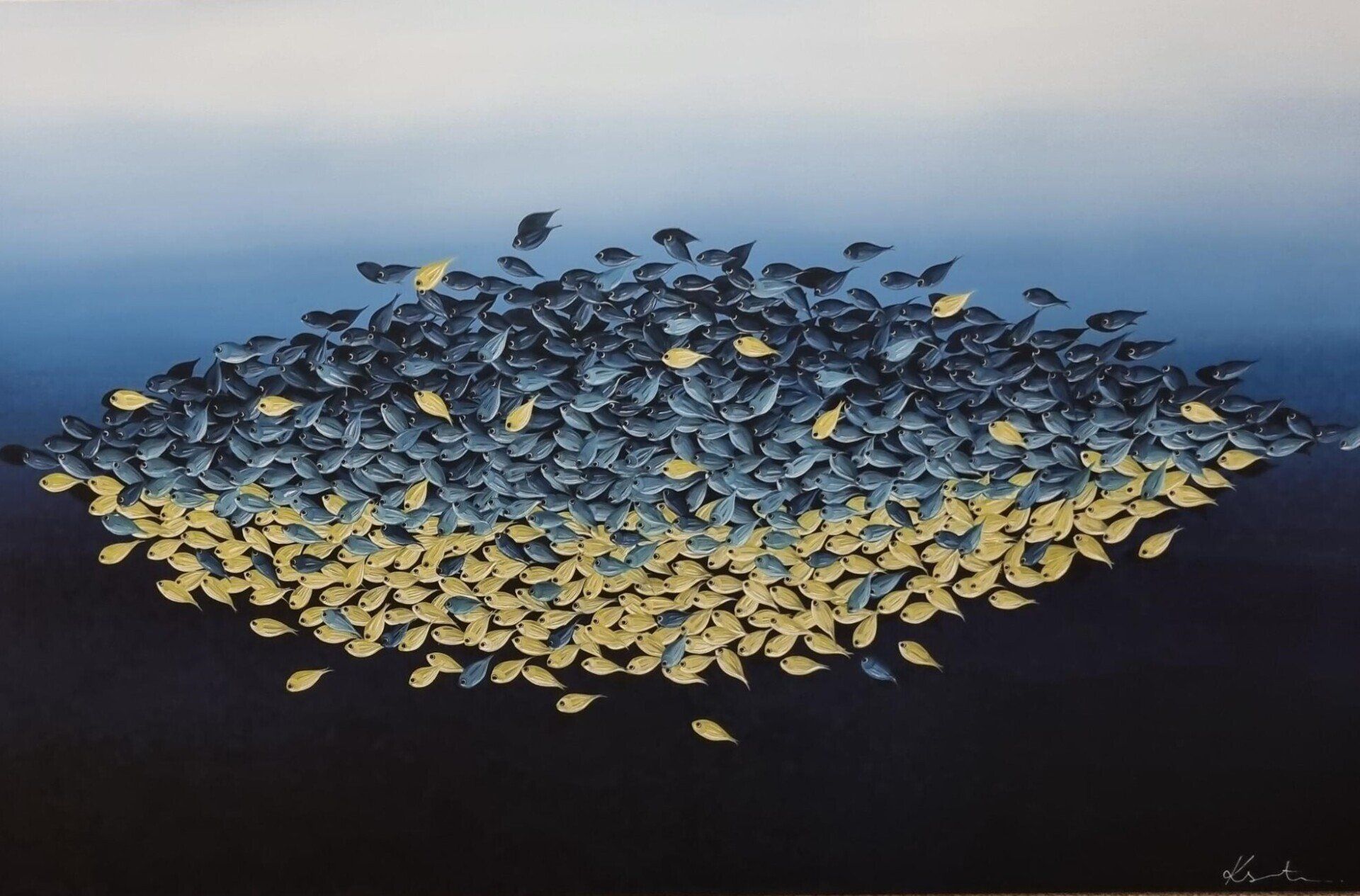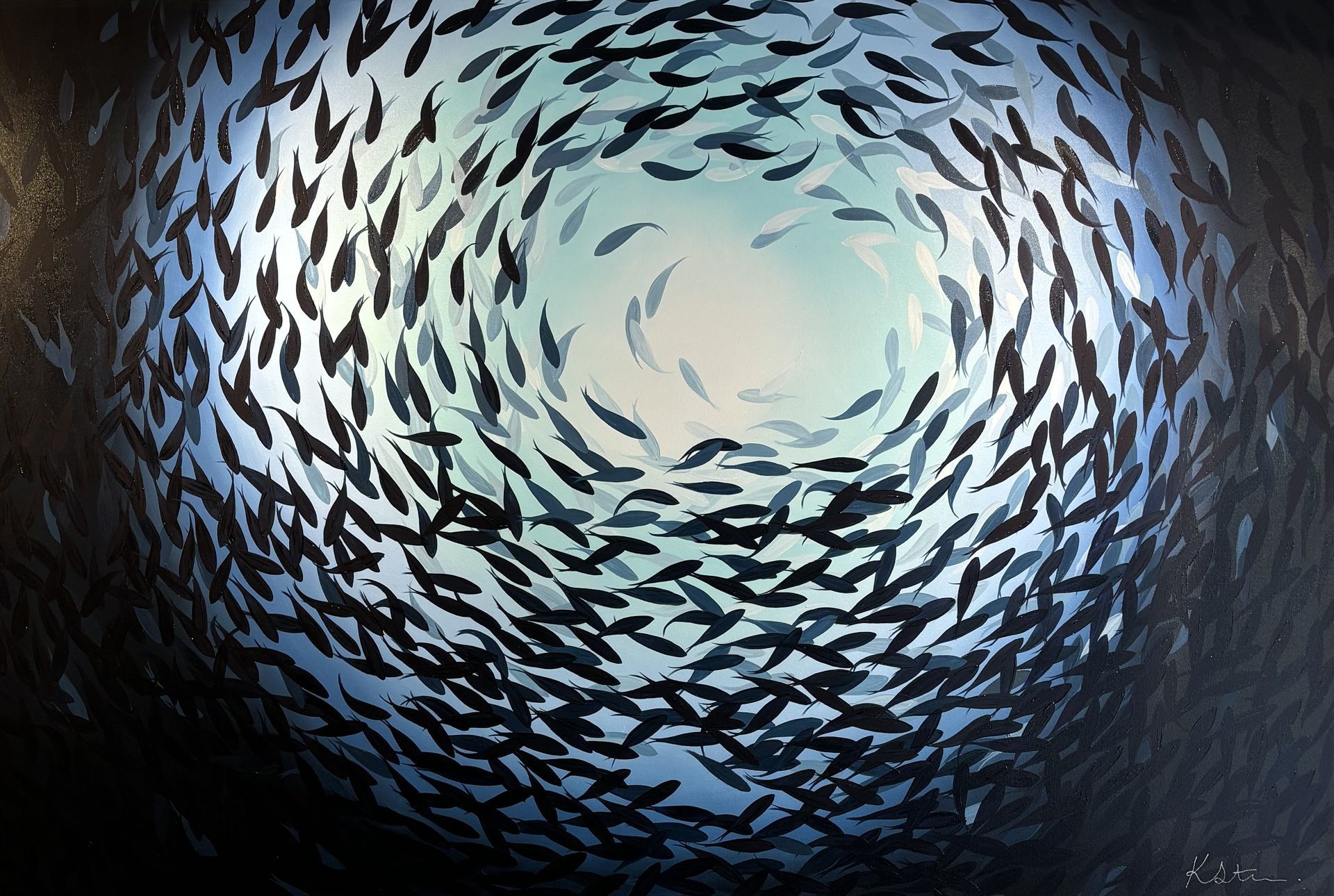 Katherine Stainton is an English artist with a strong interest in group wildlife. She is dedicated to the construction of rhythmic colour composition in her work, to create balance and a sense of harmony in order to reflect the effortless nature of animal groups, and their ability to survive as one.