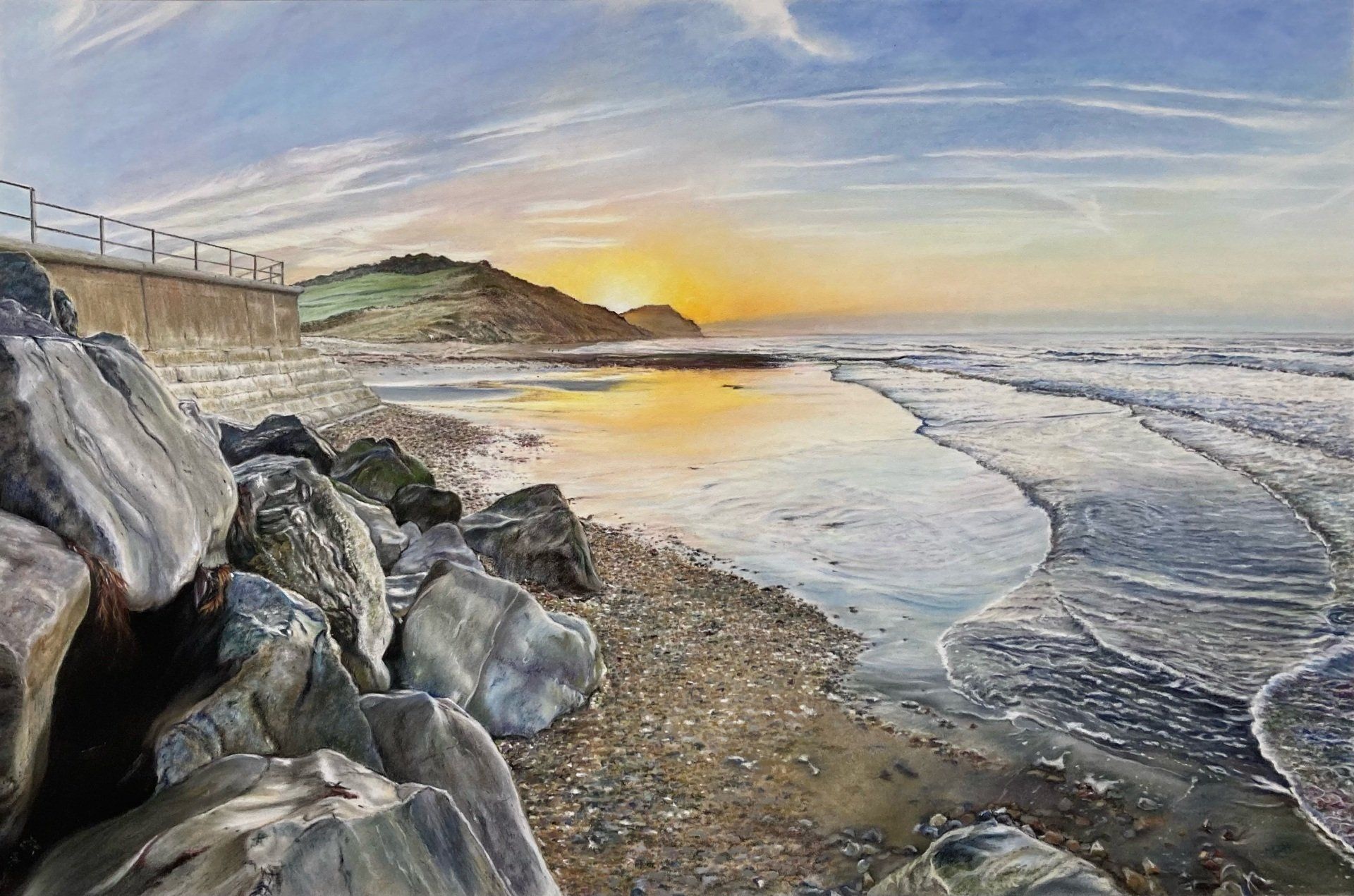 Mark is a self taught pastel artist who has lived in Axminster, Devon all his life. Living in Devon, but also being on the Dorset and Somerset borders, brings countless opportunities and inspiration for his detailed pastel landscapes inspired by the coastline and picturesque countryside on his doorstep. Mark honed his skills carrying out commission work painting pet portraits and landscapes to get a photo realistic look using pastels and pastel pencils.